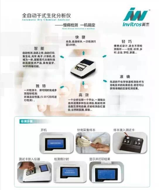 南京大樹(shù)英杰——全自動(dòng)干式生化分析儀,100秒同步檢測(cè)總膽固醇、高密度脂蛋白膽固醇、甘油三酯、葡萄糖、低密度脂蛋白膽固醇、極低密度脂蛋白膽固醇,尿酸,血紅蛋白和谷丙轉(zhuǎn)氨酶。手提箱里的體檢中心,移動(dòng)醫(yī)療好幫手。!