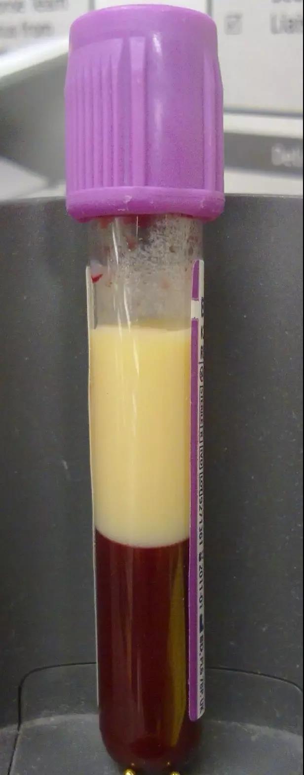 常有人將血脂與甘油三酯視為一體,實際上,甘油三酯(TG)僅是血脂的一種,血脂還包括其他物質如膽固醇等。當病人的血甘油三酯特別高(顆粒大、密度低的脂蛋白過多)時,血液會呈乳白色,將這種血靜置一段時間后,血的表面會形成厚厚的一層奶油樣物質,這便是化驗單上報告的所謂的“甘油三酯”。